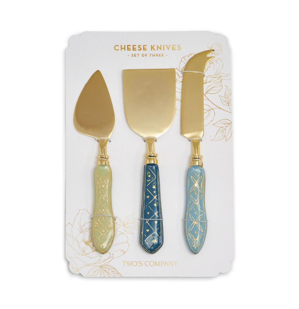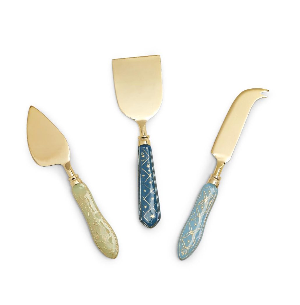 The perfect gift for any cheese lover! Each knife has its own exquisite design assorted in 3 different rich colors. Slice and serve hard cheese with ease with this beautiful set!