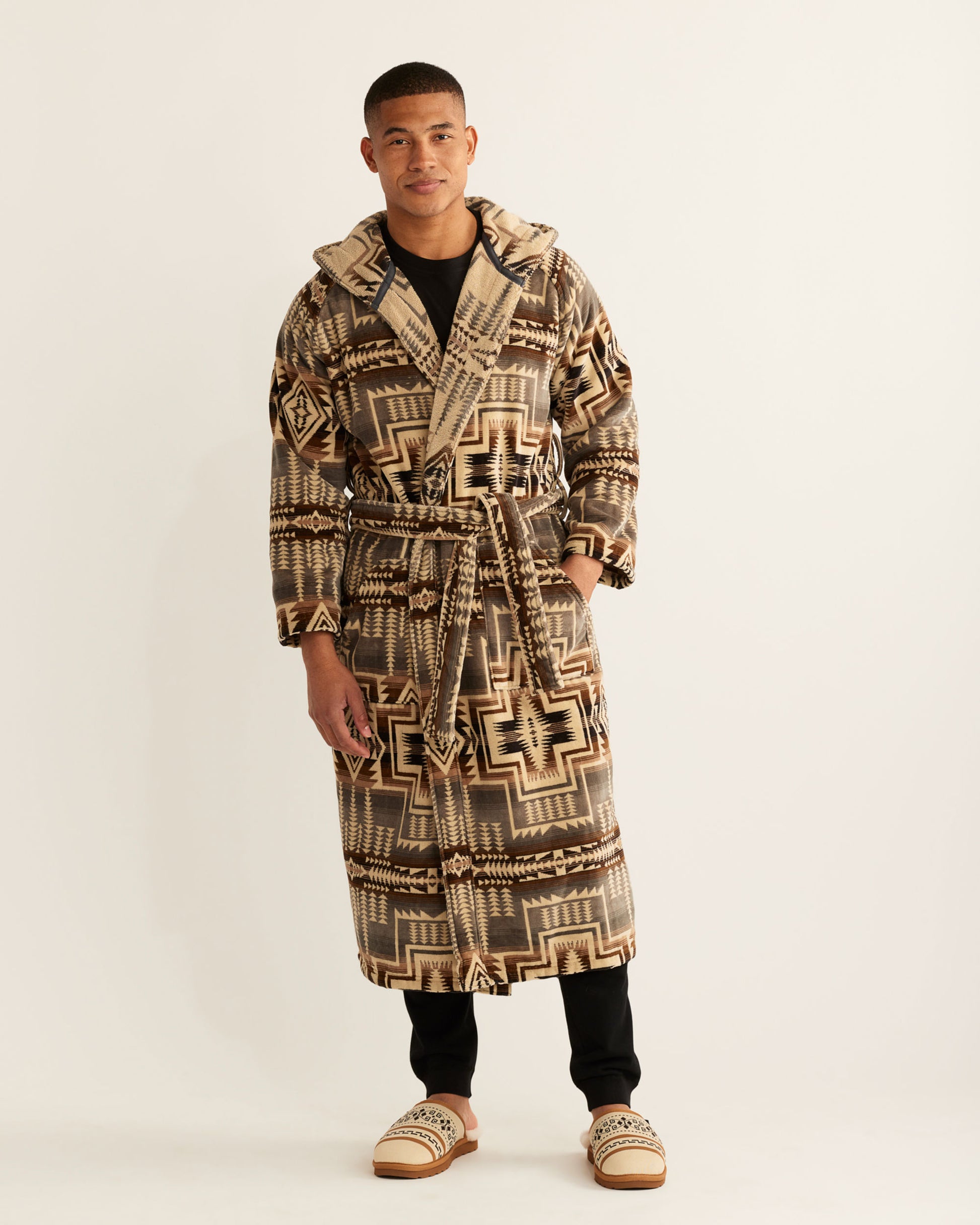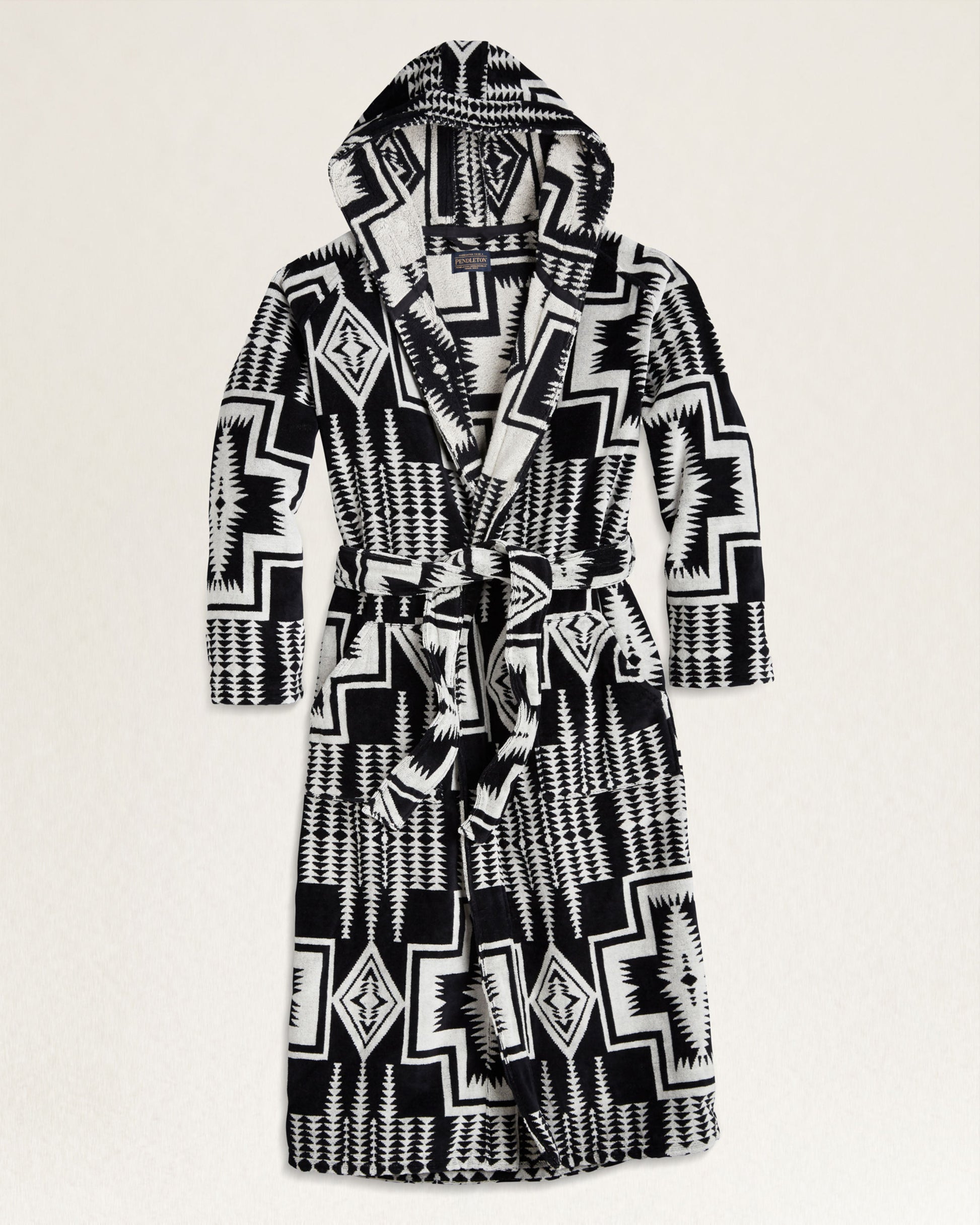 A plush, pure-cotton wrap robe that's velvety soft outside, with absorbent loops inside. Features a generous hood, two deep pockets and a self-fabric waist tie. Unisex fit.