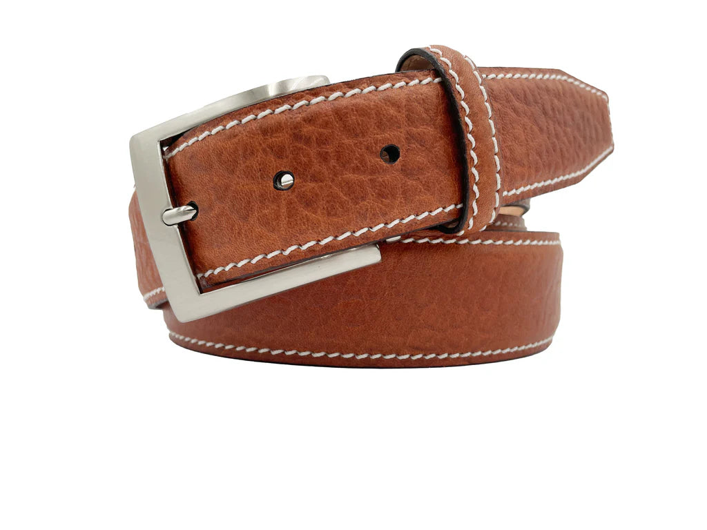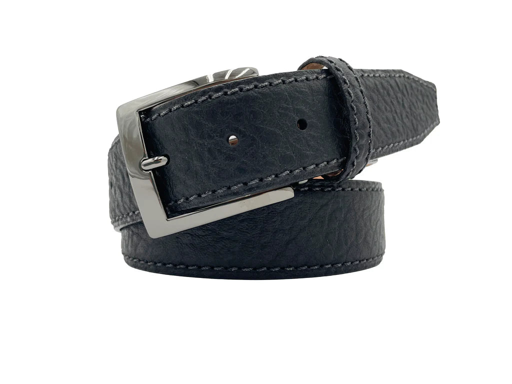 Our Genuine American Bison skins are responsibly sourced from farm-raised bison, primarily raised for organic beef. These select skins are then hand-dyed and expertly cut in the USA. Our soft Bison belts, resulting from this meticulous process, offer versatility that suits various occasions, whether it's adding a touch of refinement to your dress attire, enhancing your casual jeans look, or completing your golf ensemble for peak performance on the course.