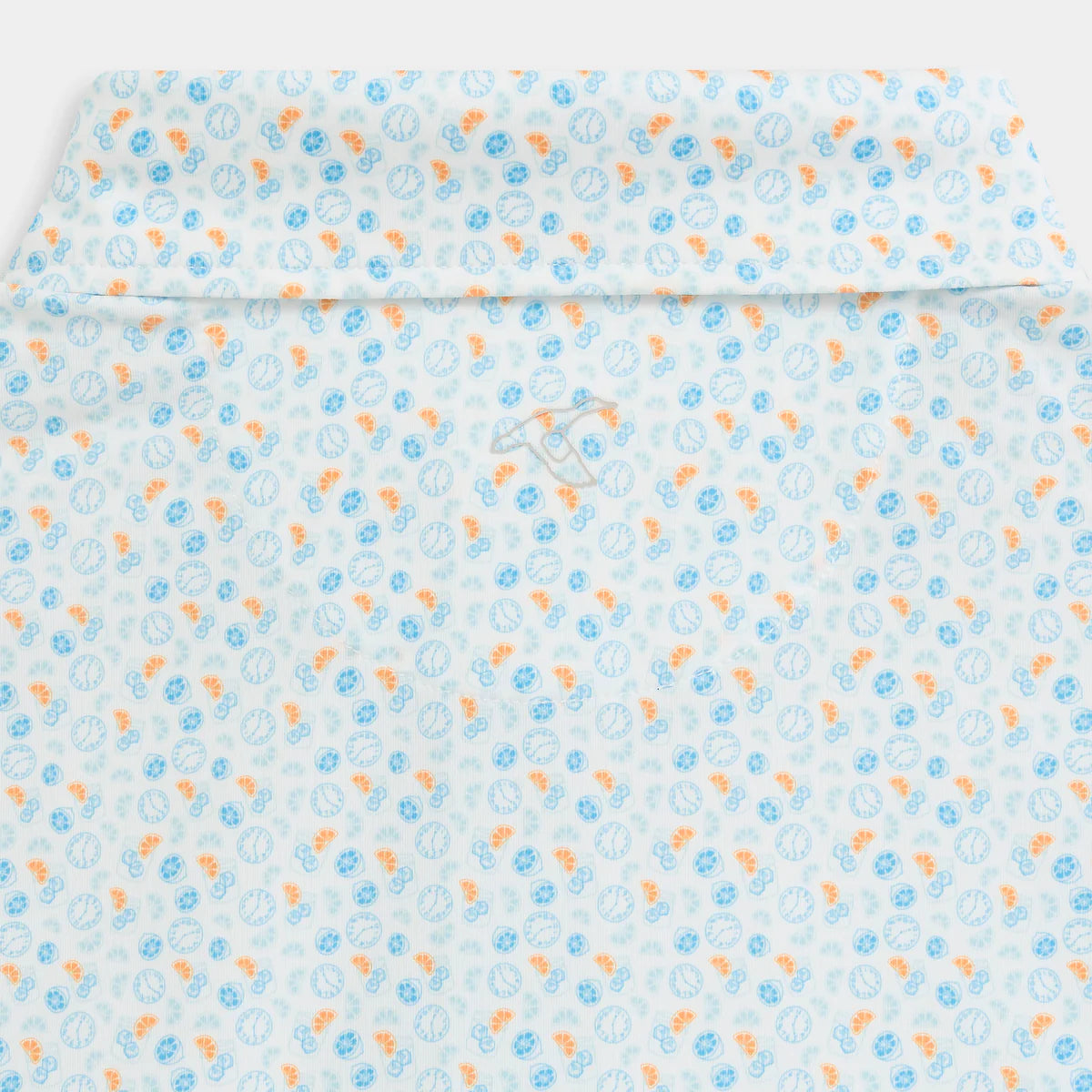 It's always 5 o'clock in our top-pick Printed Polo for this season. Featuring a unique pattern of happy hour essentials, this polo is crafted from our signature moisture-wicking performance fabric. Its breathable, lightweight material keeps you cool and dry, while our signature sewn-in collar stays ensure a sharp, polished look that lasts all day.