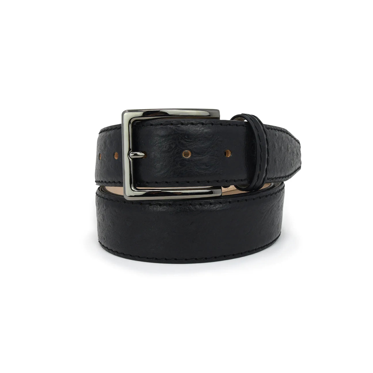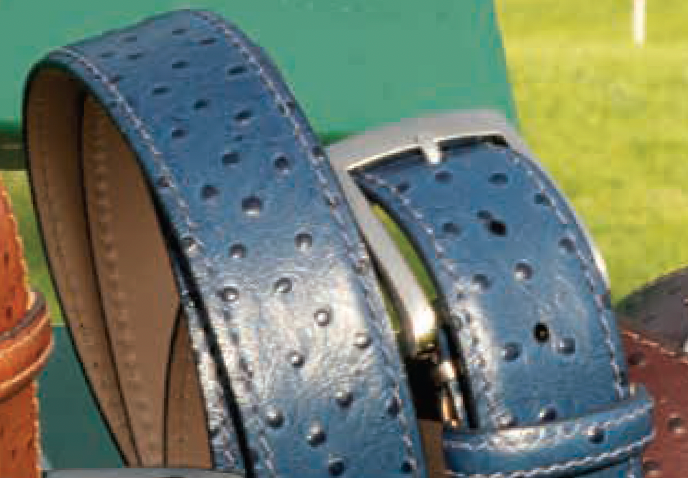 The Italian Calf Skin Ostrich embossed pattern is almost identical to a genuine Ostrich belt. With a real quill feel and look, you are bound to get compliments wearing this exotic collection of belts. Each skin is hand finished in Italy and hand made by renowned craftsman, Roger Ximenez.