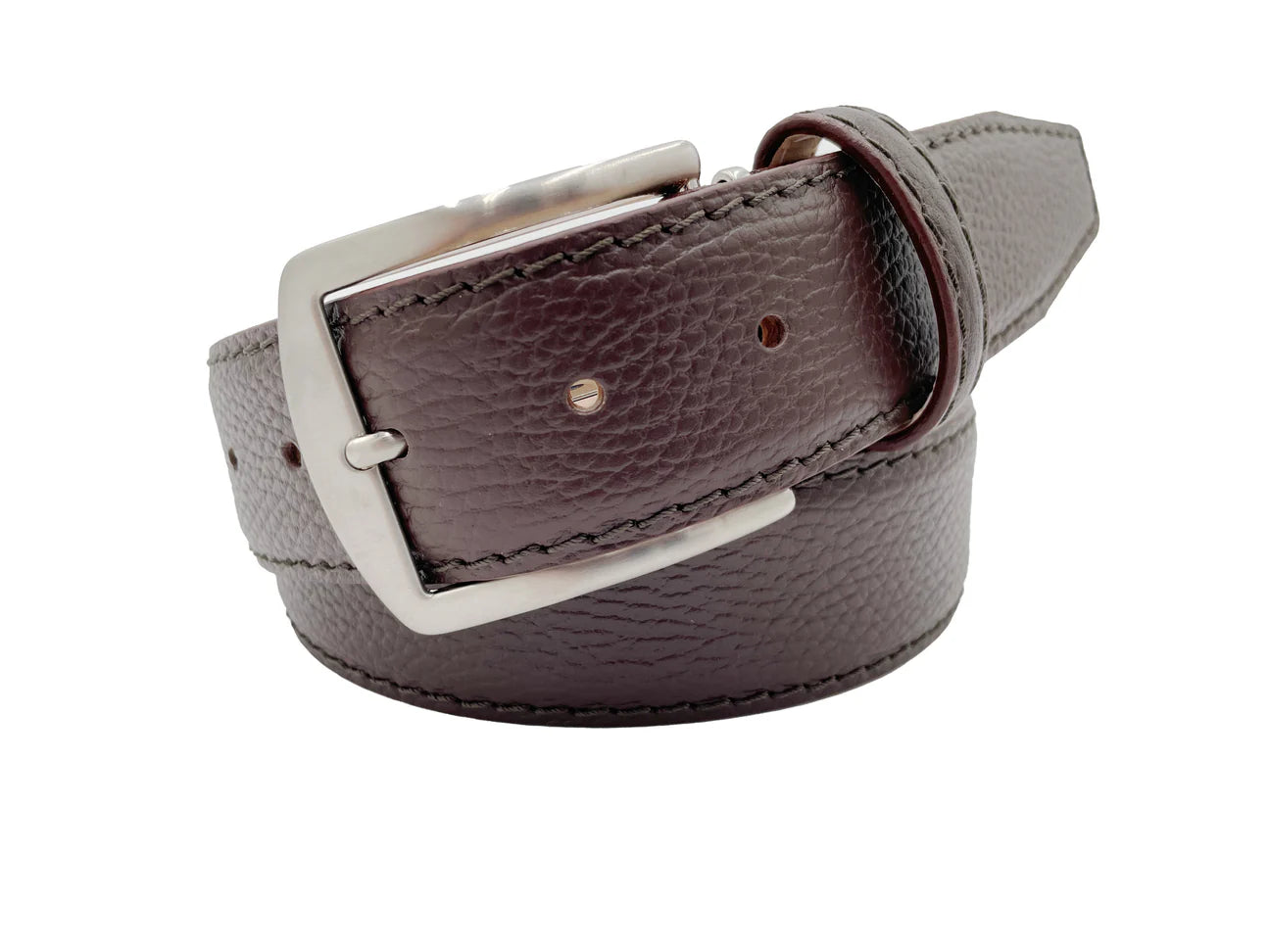 Enhance your golfing attire with our Pebble Grain Golf Belt, expertly handcrafted in the USA from premium Italian calf leather. This belt seamlessly fuses Italian sophistication with American craftsmanship, offering a luxurious touch and long-lasting durability. Its unique pebble grain texture not only adds character but also ensures that you stand out on the golf course. Discover the ideal harmony of quality and style, tailor-made for golfers who demand the best.