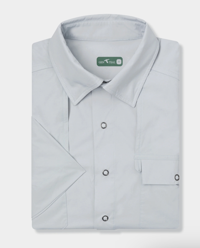 It's time to reel in the big one in the Safari Vented Shirt with its blend of polyester and spandex that offers function and flexibility for those who long for their feet in the sand and a cold one in their hand. Available in Allure, Angel Falls and Pearl Blue and featuring a sunglass cleaning swatch at the bottom of its placket, it's made to handle any adventure.
