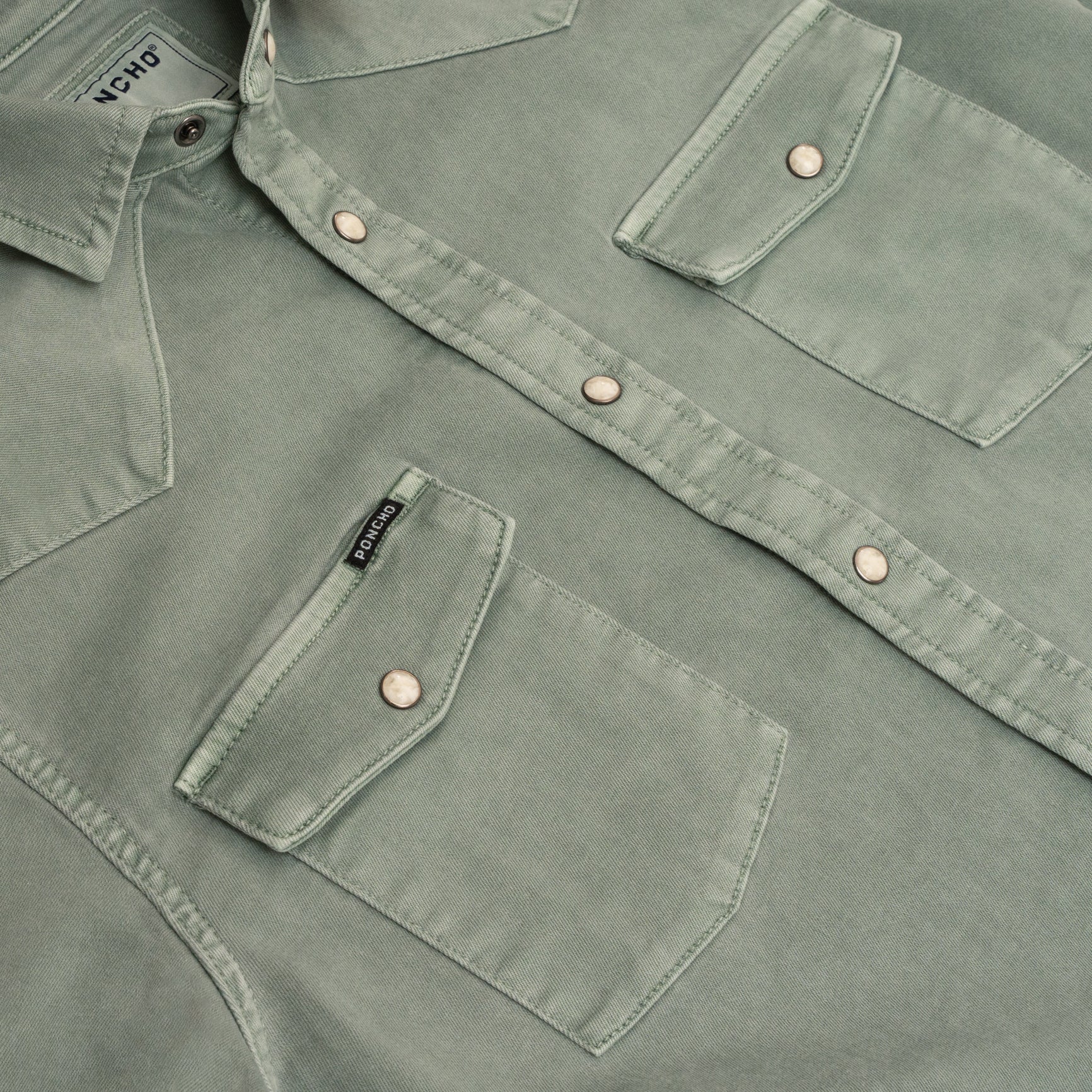 Our best-selling performance denim western shirt now in a smokey green color. Medium weight, with a broken-in feel and just the right amount of stretch.