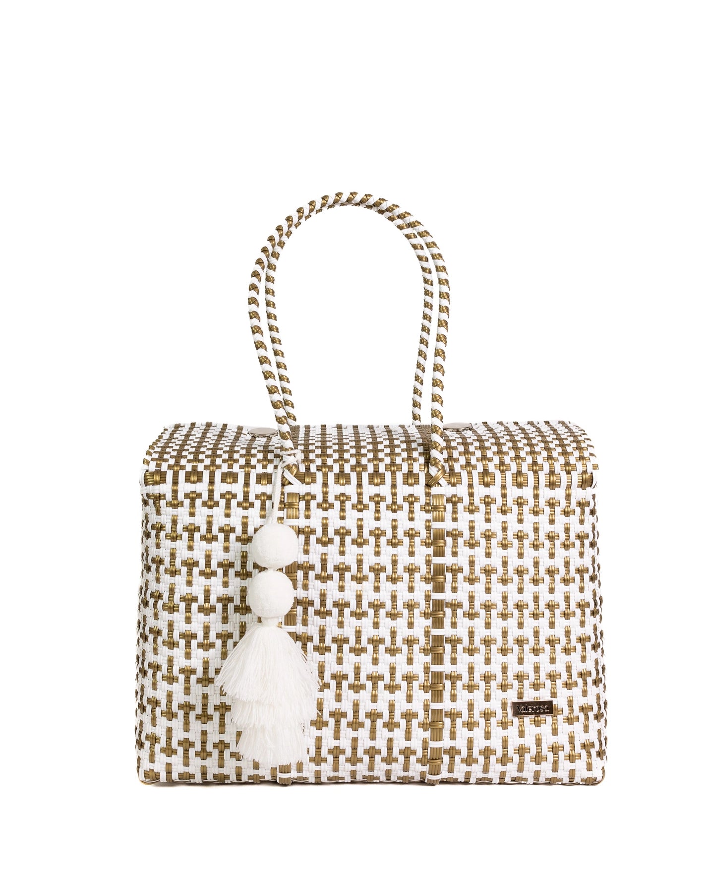 Our totes are colorful, hand-woven Mexican baskets that bring a bright, authentic style to any occasion. This tote is big enough for a weekend away. Made with durable plastic that lasts a lifetime. Our Mexican totes have a unique design that will persevere to any destination.